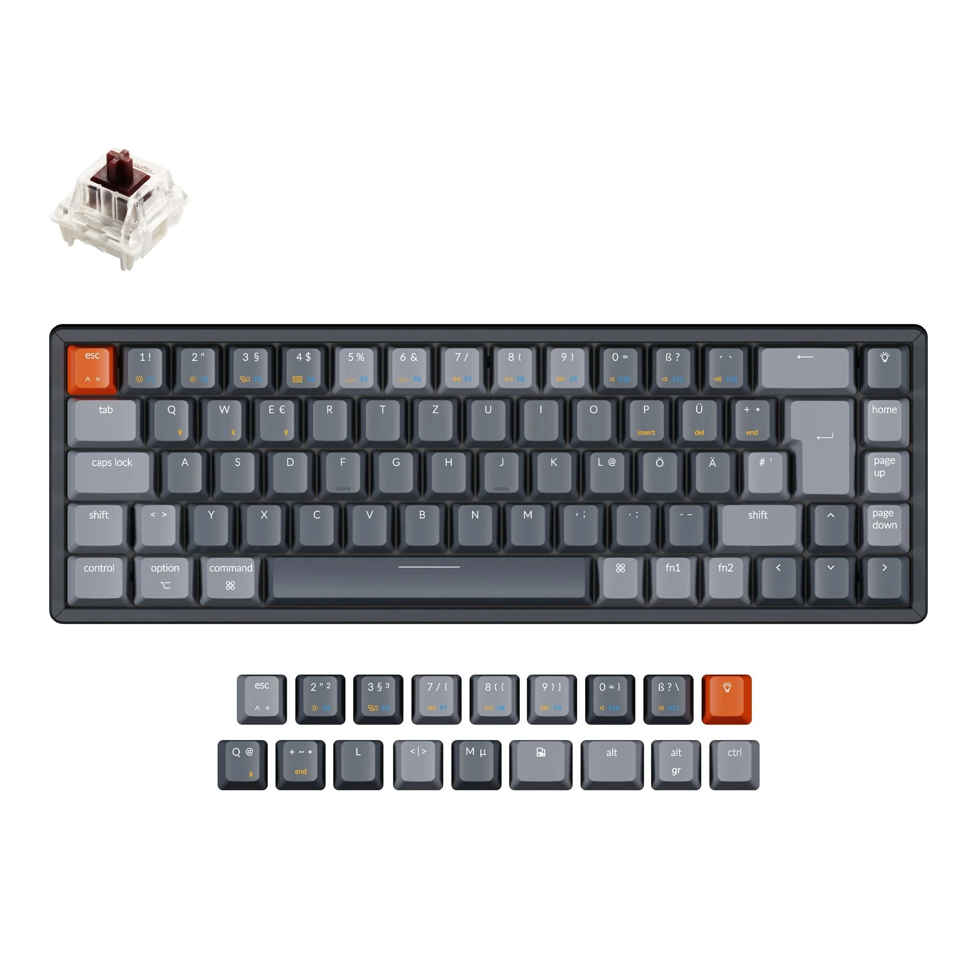 Keychron K6 65% Compact Wireless Mechanical Keyboard (German ISO-DE Layout) has included keycaps for both Windows and macOS, and comes with QWERTZ layout, and users can hotswap every switch in seconds with the hot-swappable version.